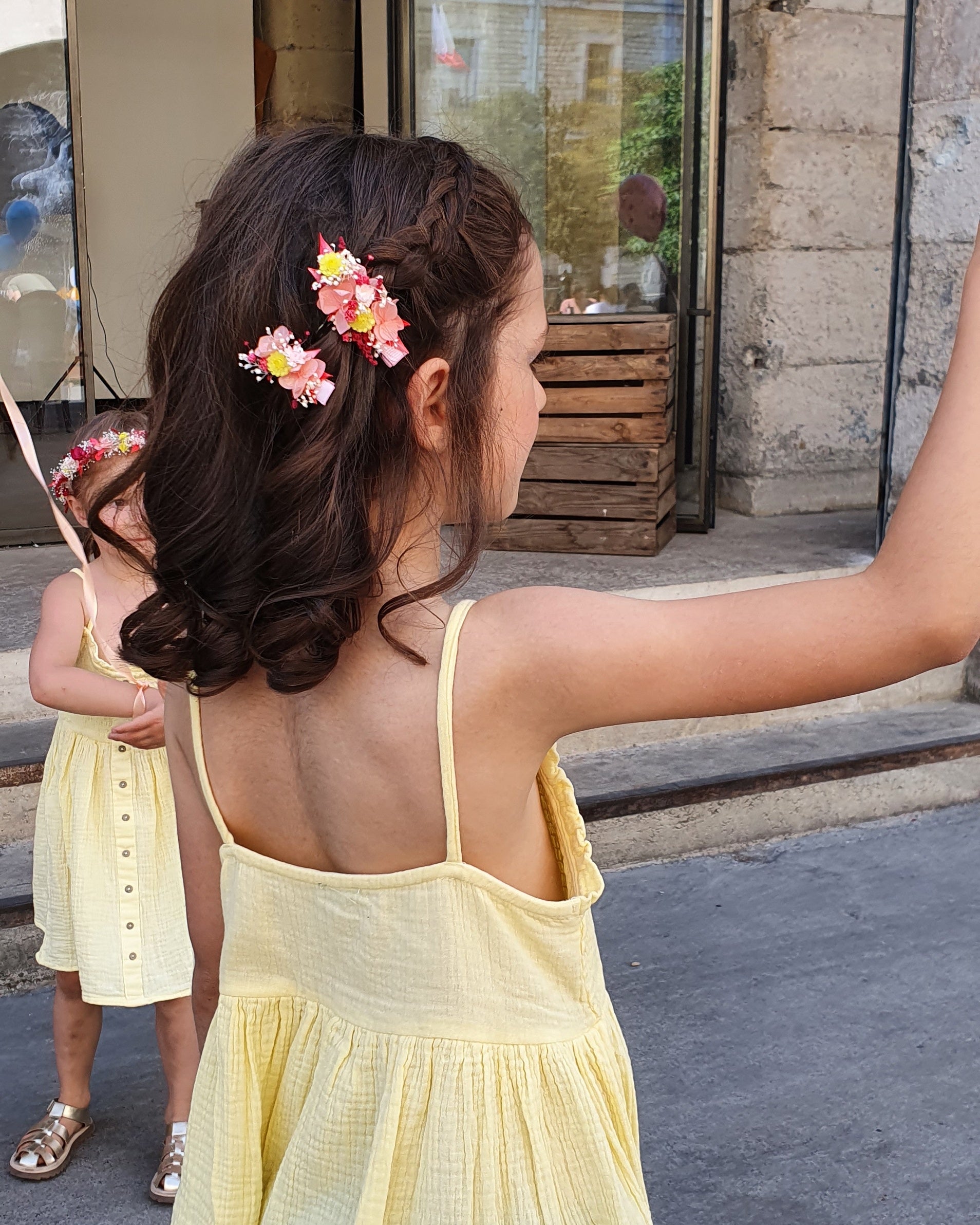 Durée et conseil de conservation : les fleurs qui composent ces barrettes sont éternelles, toutefois les couleurs sont susceptibles d’évoluer avec le temps. Pour conserver au maximum leur couleur d’origine, préservez du soleil, de la chaleur et de l’humidité