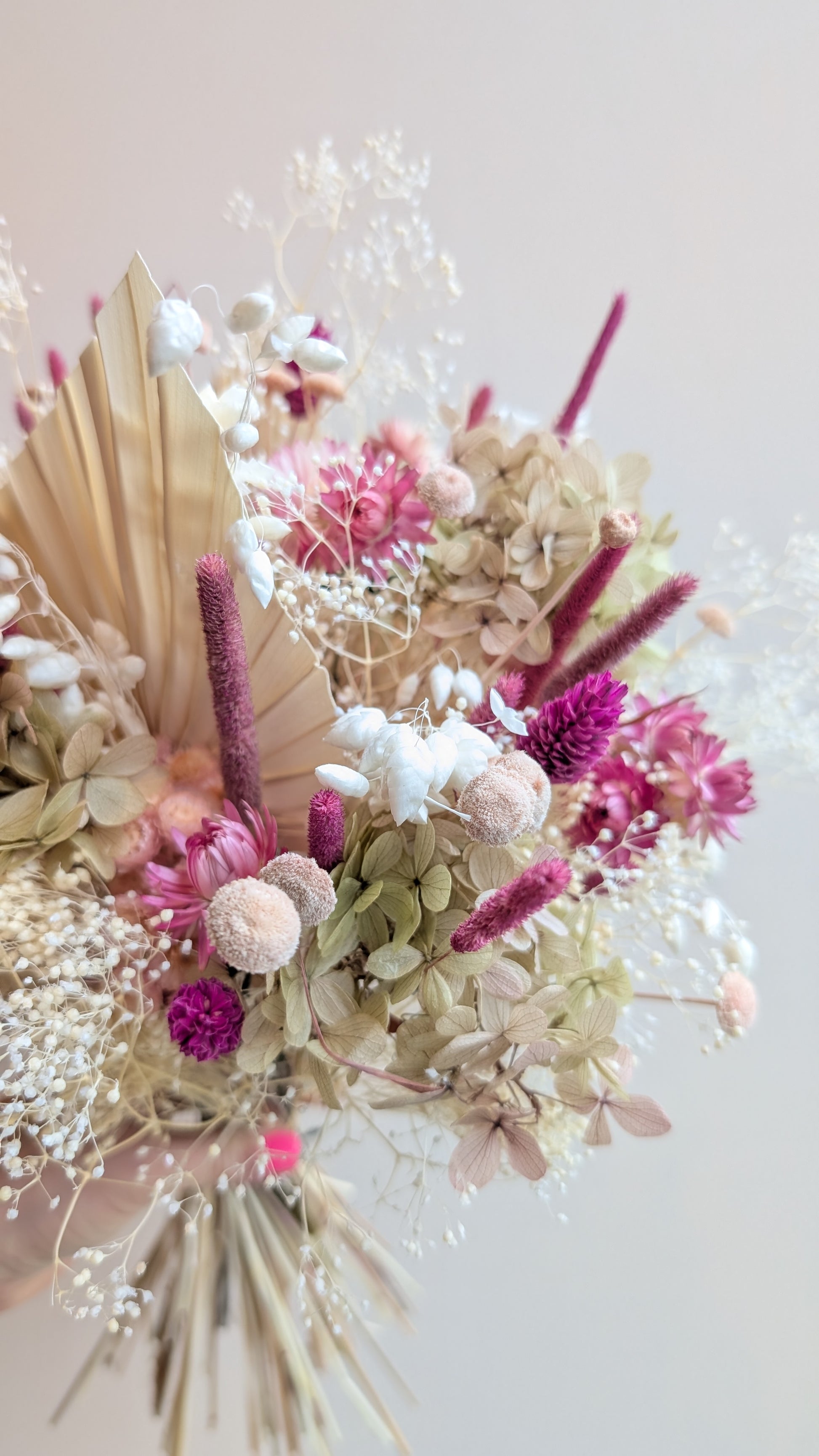 Bouquet en fleurs séchées - Rose, Blanc et Beige