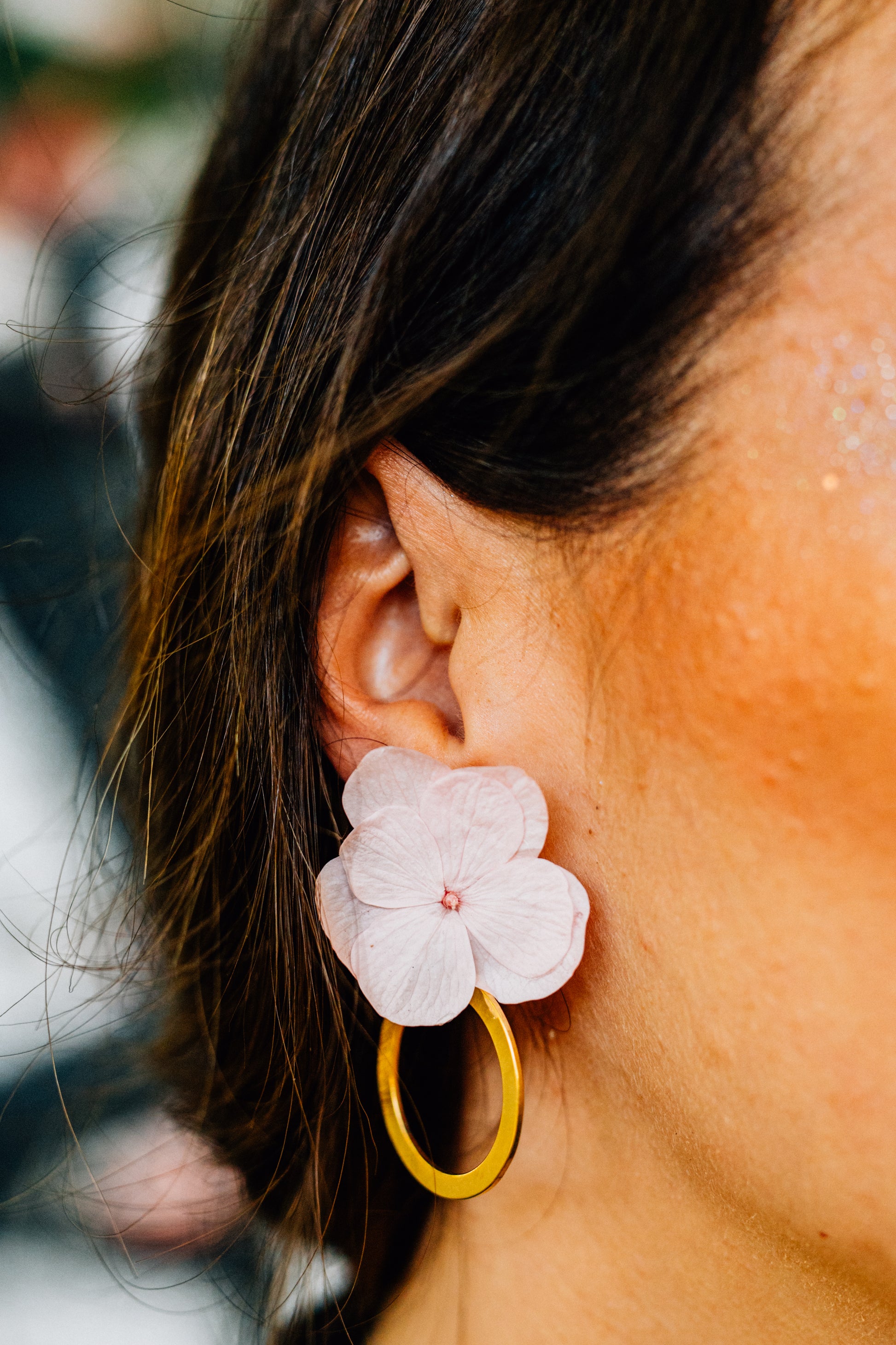 Boucles d'oreilles doré avec de l'hortensia stabilisé